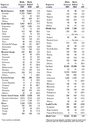 When included with the rest of the world, Canada’s 2008 performance led to a net increase of about 2,300 wells drilled outside the US compared to 2007.