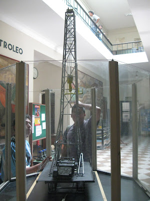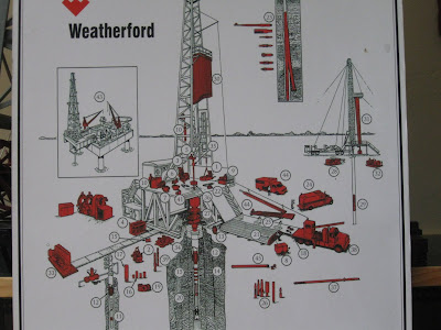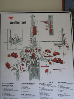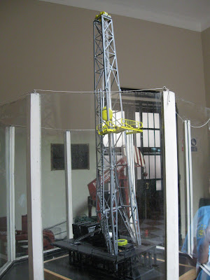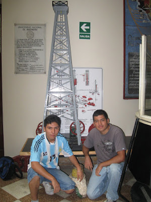 Bueno muchachones en este post les traigo algunas fotografías de un Derrick, Mástil o Castillo de Perforación que las tomé con el objetivo de estudiar para mi primera práctica. Lamentablemente sucedieron algunos imprevistos y no asistí a rendir dicha práctica, caballero nomás tendré que eliminar. Pero me quedaron las fotos de Castillos en miniatura que se encuentran en mi Facultad así como la foto de un panel en el cual se indican uno por uno los componentes del Castillo de Perforación.
