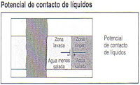 Este potencial se produce por contacto de soluciones de diferentes salinidades. El contacto puede ser directo o a través de una membrana semi-permeable como las lutitas. De acuerdo con el tipo de contacto el potencial puede ser: Potencial de contacto de líquidos o potencial de membrana.